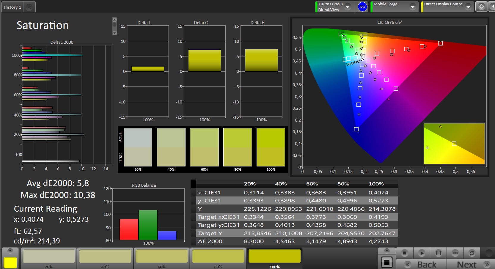 | Colorchecker dE 2000 max. * | 10.77 | 15 -39% | 8.26 23% | 7.22 33% |