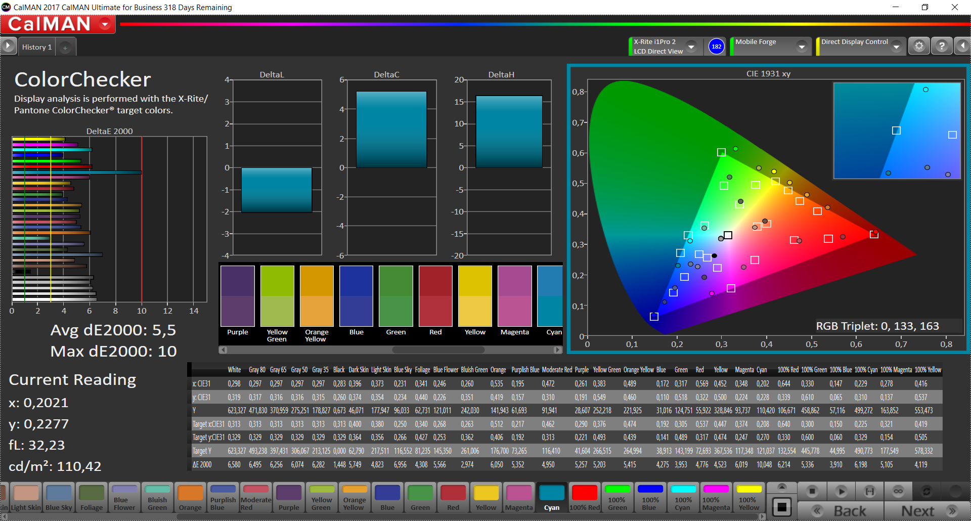 ΔE ColorChecker Calman: 5.5 | ∀{0.5-29.43 Ø4.78}