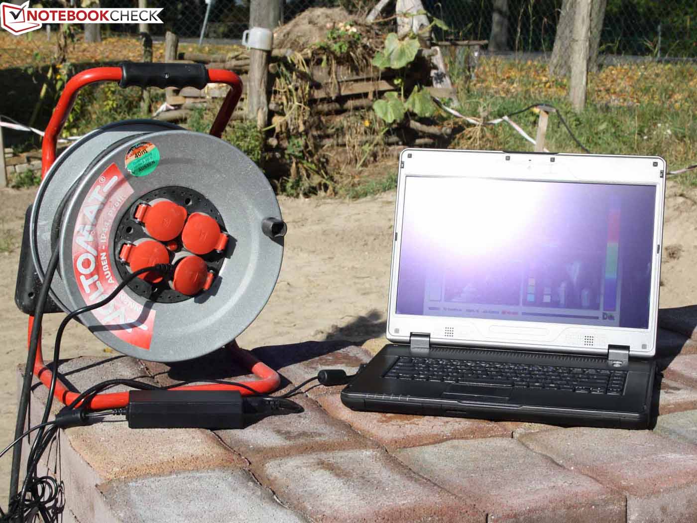 Die Luminanz der Anzeige war während des Tests auf 210 cd/m² gedimmt (üblich sind 150), eine niedrigere Leuchtdichte ist nicht einstellbar. Die Laufzeit beim Abspielen einer DVD mit 210 cd/m² erreicht 3:43 Stunden, also etwas weniger als der WLAN-Test. Bei maximaler Helligkeit im Akkubetrieb (310 cd/m²) verringert sich diese Zeit auf 3:00 Stunden. 100 Candela kosten dem Laptop also 43 Minuten Laufzeit. Jetzt wird klar, warum der Barebone-Hersteller im Akkubetrieb die Helligkeit von möglichen 700 cd/m² auf 310 cd/m² herabsetzt.