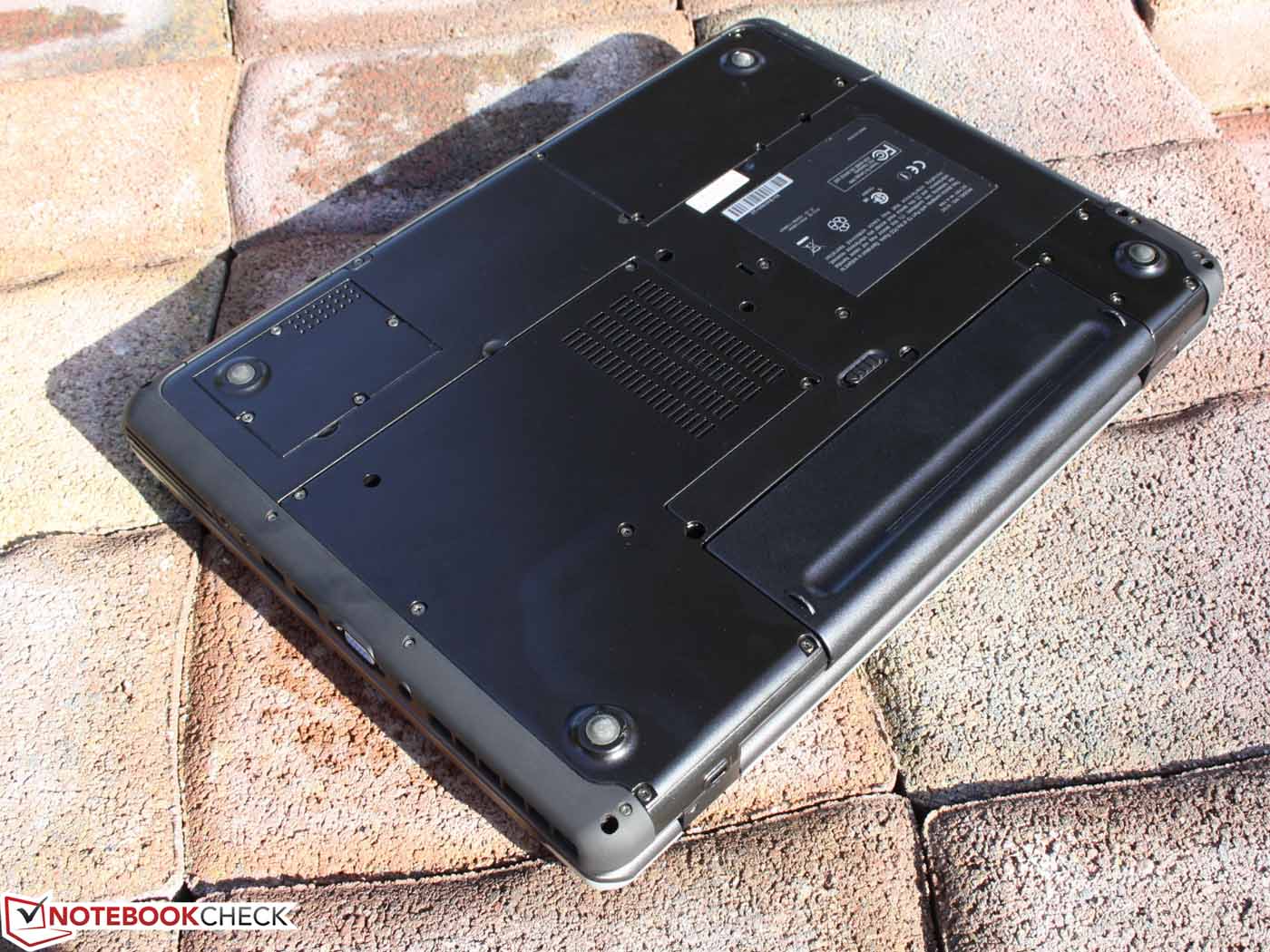 Die steife Base-Unit müssen wir schon genau untersuchen, um irgendwo eine nachgebende Stelle zu finden. Direkt unter dem TFT, darunter sitzt der Akku, finden wir eine solche Schwachstelle. Das Areal über dem DVD-Laufwerk sitzt sehr fest. Handballenauflage, Tastatur, Gelenke, TFT-Rahmen, Deckelfläche und Bodenplatte - all das erscheint wie aus einem Guss gemeißelt. Dies ist natürlich nicht so, besonders auf der Unterseite sehen wir eine Vielzahl von Klappen, welche durch unzählige Schrauben verankert sind. Auch die Seiten und Frontbereiche sind separat angeschraubt.