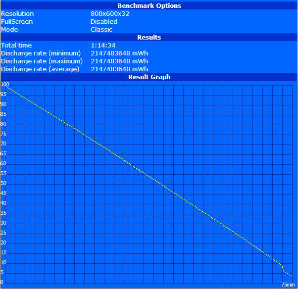 Trotz der ungünstigen Voraussetzungen kann die Bullman-Workstation dennoch mit gleichwertigen Akkulaufzeiten aufwarten. Hier zahlen sich die Taktreduzierungen von CPU (2 GHz) und GPU (135 MHz) im Akkubetrieb aus. Während beim Dell Precision M6700 nur geringe Leistungseinbußen hinzunehmen sind, wird das Bullman-Testgerät doch schon spürbar gedrosselt. Beim Battery Eater Readers Test (minimale Displayhelligkeit, Funkmodule aus, Energiesparmodus) werden über 5 Stunden, beim W-LAN-Surfen (ca. 135 cd/m², Energiesparmodus, Funk an) knapp 4,5 Stunden und beim DVD schauen (maximale Helligkeit, Energiesparmodus, funk aus) noch knapp 4 Stunden Akkulaufzeit erreicht. Der Battery Eater Classic Test (alles an, maximale Helligkeit, Höchstleistungsprofil) profitiert schließlich am meisten von den Taktreduzierungen und erreicht deshalb noch über 1 Stunde Laufzeit.