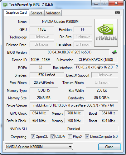 Nvidias Quadro K3000M ist das Herzstück dieser Bullman E-Klasse und macht aus dem „normalen“ Spielerechner eine professionelle Workstation. Vergleichbar ist dieser Chip hardwareseitig mit der Geforce GTX 680M (etwas abgewandelt) aus dem Consumerbereich. Mit dem speziellen Bios und angepassten Quadro-Treibern ist dieses Grafikkartenmodell für OpenGL- und insbesondere CAD-Anwendungen optimiert.