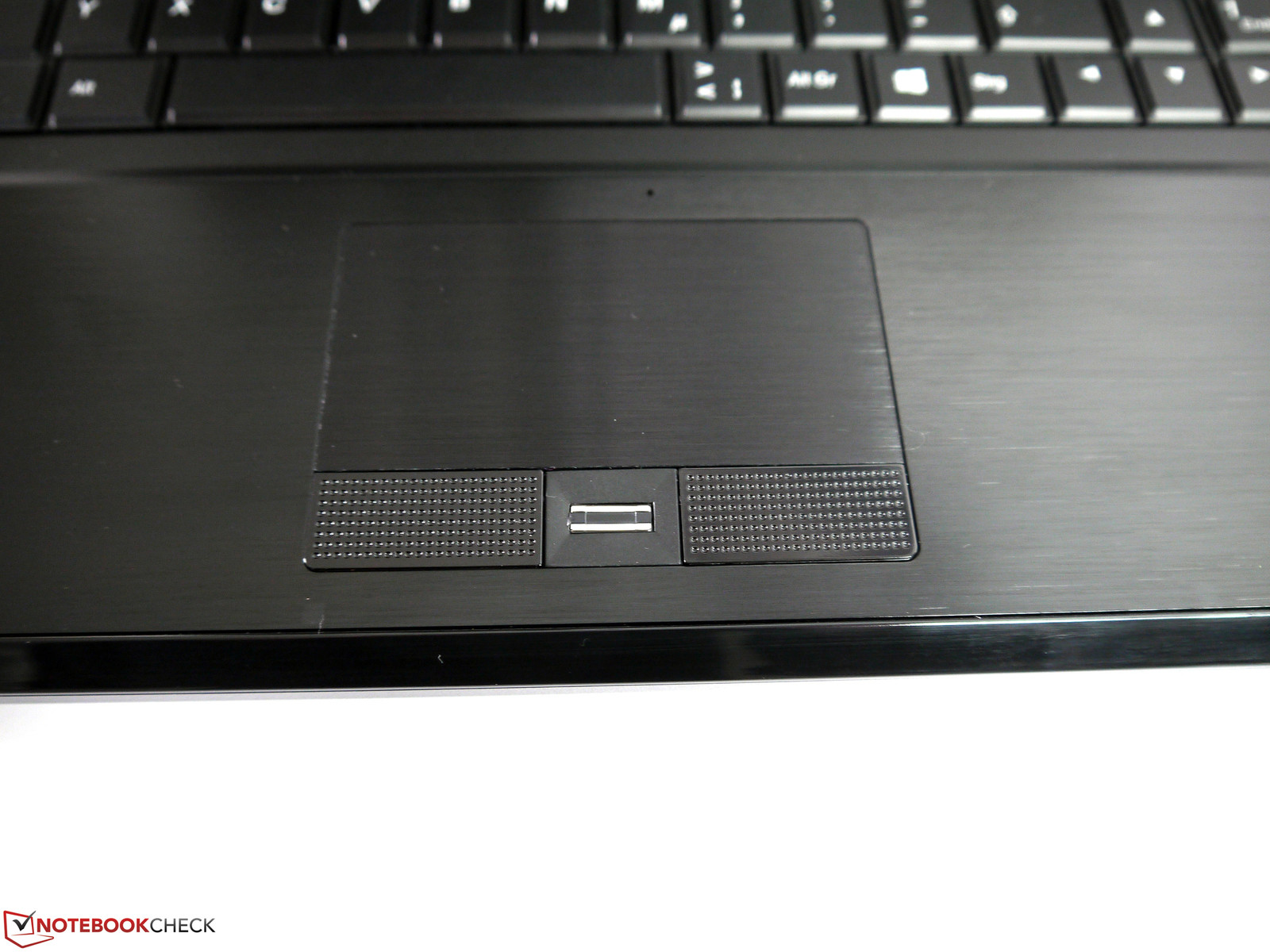 Das Touchpad ist nicht wie sonst oft üblich direkt unterhalb der Space-Taste positioniert, sondern befindet sich hier nur etwas nach links versetzt relativ zentral in der Handballenablage. In der Praxis als nachteilig erweist sich die im gebürsteten Look gestaltete Gleitfläche. Durch die kleinen Querrillen wird die Fingerbewegung immer leicht abgelenkt und führt so zu einer spürbar anstrengenderen Zeiger-Navigation. Eine wie sonst übliche glatte Oberfläche wäre hier deutlich zweckmäßiger. Gut gefallen wiederum die separat ausgeführten Touchpadtasten, die sich gut bedienen lassen und Eingaben zuverlässig annehmen. Ein Pointstick ist nicht verfügbar.