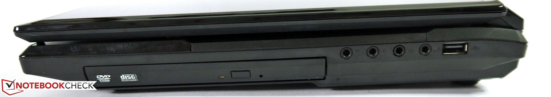 Das im Testgerät verbaute 2.1-System mit einem Subwoofer am Unterboden, liefert einen vergleichsweise ausgewogenen Klang. Leicht höhenlastig, sind Mitten und Bässe gut auszumachen und verleihen der Soundcharakteristik eine ordentliche Portion Volumen. Das Soundsystem kann sich insgesamt wohltuend von den üblichen Business-Lautsprechern abheben, erreicht aber nicht ganz die Qualität des Asus N76-VZ mit externem Subwoofer. Eine Besonderheit sind beim Testgerät die vier separaten Audio-Schnittstellen an der rechten Seite, die auch einen selten gewordenen S/PDiF-Zugang beinhalten.