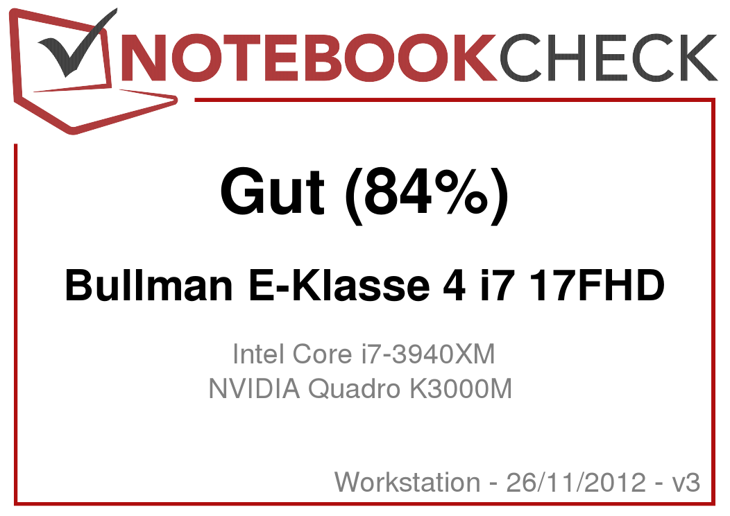 Unser von Bullman zusammengestelltes Testsystem verfügt über Intels Core i7-3940XM CPU, 32 GB RAM, Nvidia Quadro K3000M Grafik, 240 GB Solid State Drive und ein mattes Full-HD-Display. Der Preis liegt zum Testzeitpunkt bei 3.620 Euro und bewegt sich gemessen an der leistungsstarken Ausstattung im eher günstigen Workstation-Bereich.