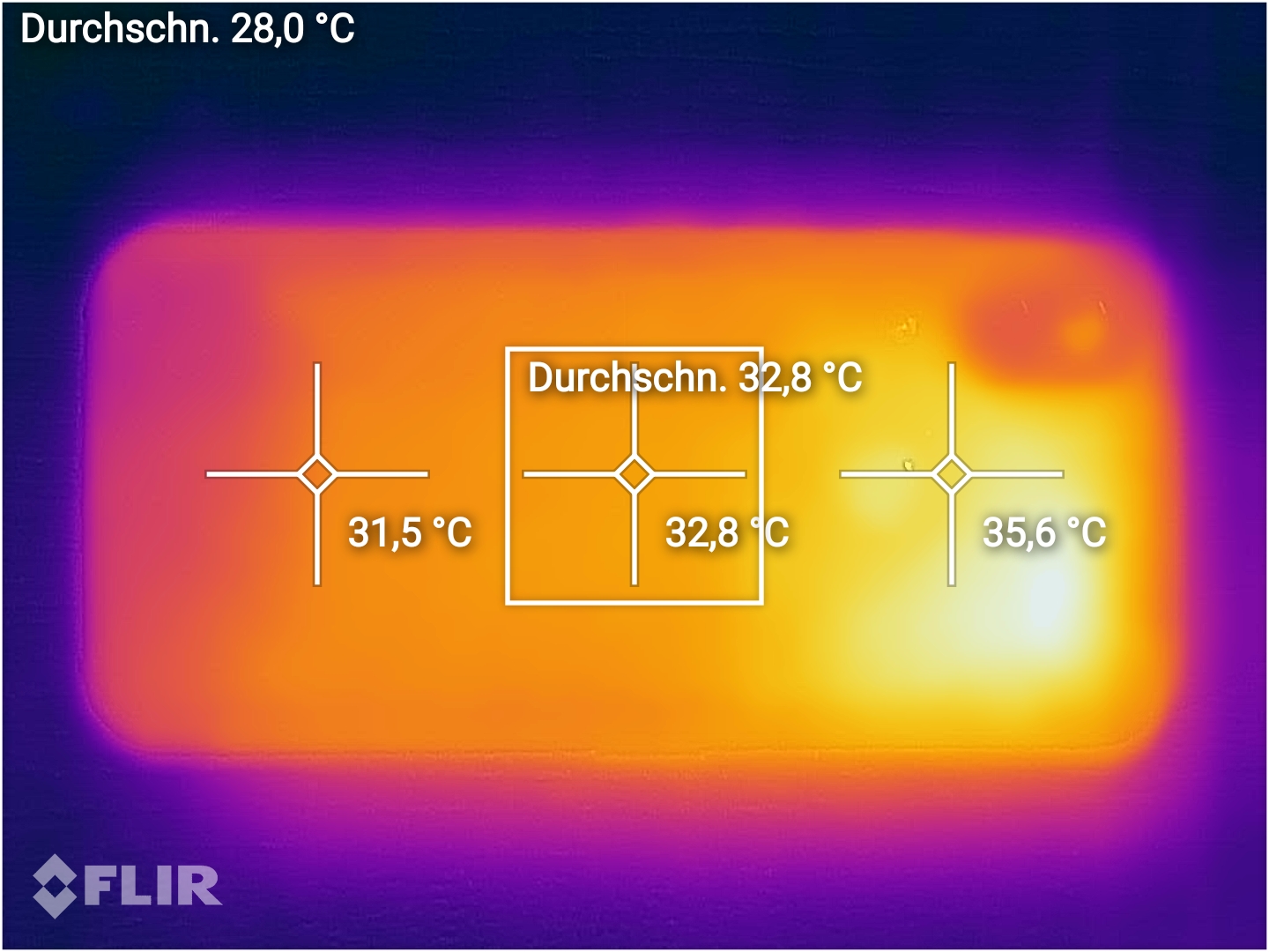Sowohl die Rück- als auch Vorderseite des S62 Pro erwärmen sich unter Last nur moderat.