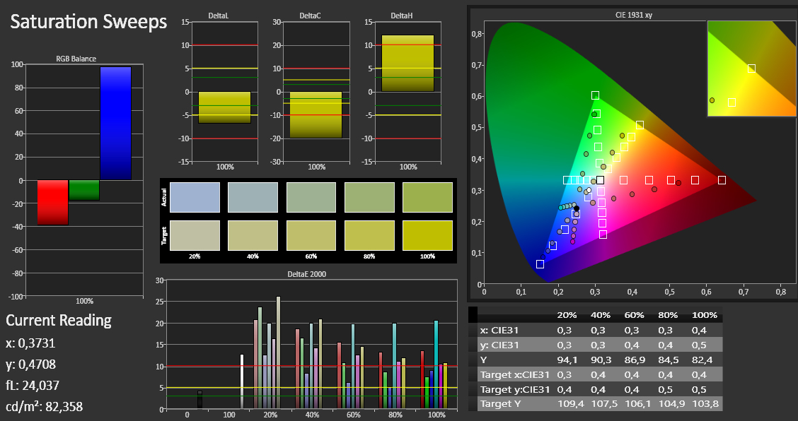 ΔE ColorChecker Calman: 14.5 | ∀{0.5-29.43 Ø4.78}