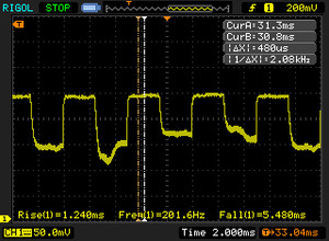 Das Display flackert mit 200 Hz (im schlimmsten Fall, eventuell durch Pulsweitenmodulation PWM) bei einer eingestellten Helligkeit von 99 % und darunter. Darüber sollte es zu keinem Flackern kommen. Die Frequenz von 200 Hz ist relativ gering und daher sollte es bei sensiblen Personen zu Problemen wie Flackern oder Augenbeschwerden führen. Im Vergleich: 53 % aller getesteten Geräte nutzten kein PWM um die Helligkeit zu reduzieren. Wenn PWM eingesetzt wurde, dann bei einer Frequenz von durchschnittlich 8125 (Minimum 5, Maximum 343500) Hz. | |||