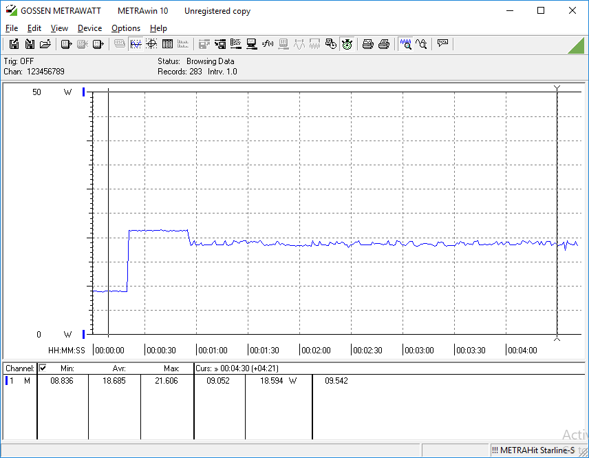 Einer der Vorteile des Intel Core m3-6Y30 ist seine geringe TDP von 4,5 Watt. Während ihm somit an Power fehlt, ist er zumindest einigermaßen energieeffizient. Unter Last nimmt das System im Durchschnitt 20 Watt auf. Die Nennleistung des mitgelieferten Netzgeräts beträgt 24 Watt. Die maximale Energieaufnahme lag in unserem Test bei 28,6 Watt. Da es sich hierbei um eine sehr kurzfristige Spitze handelt, ist dies nicht weiter besorgniserregend.
