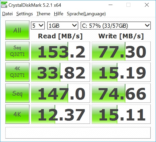 Subjektiv sollte man keine Geschwindigkeitswunder vom Chuwi erwarten. Windows 10 steuert sich zwar weitestgehend flüssig, im Vergleich zu einem Laptop fallen aber schon deutlich längere Ladezeiten, vereinzelte Hänger oder verschluckte Tastatureingaben durch noch nicht zu Ende geladene Fenster auf. Auch bei mehreren geöffneten Tabs beim Surfen machen sich Geschwindigkeitsverluste bemerkbar. Insgesamt hat man mitunter das Gefühl, dass Windows nicht die richtige Cherry-Trail-Plattform ist, gerade beim Surfen können Tastatureingaben teils nur mit Verzögerung angezeigt werden, oft fühlt sich die Bedienung subjektiv etwas "zäh" an.
