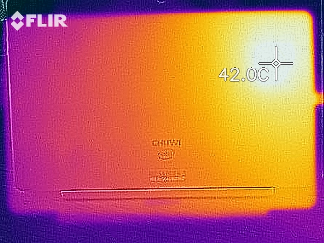 (±) Die maximale Temperatur auf der Oberseite ist 42.4 °C. Im Vergleich liegt der Klassendurchschnitt bei 35.4 °C (von 19.6 bis 60 °C für die Klasse Convertible).
