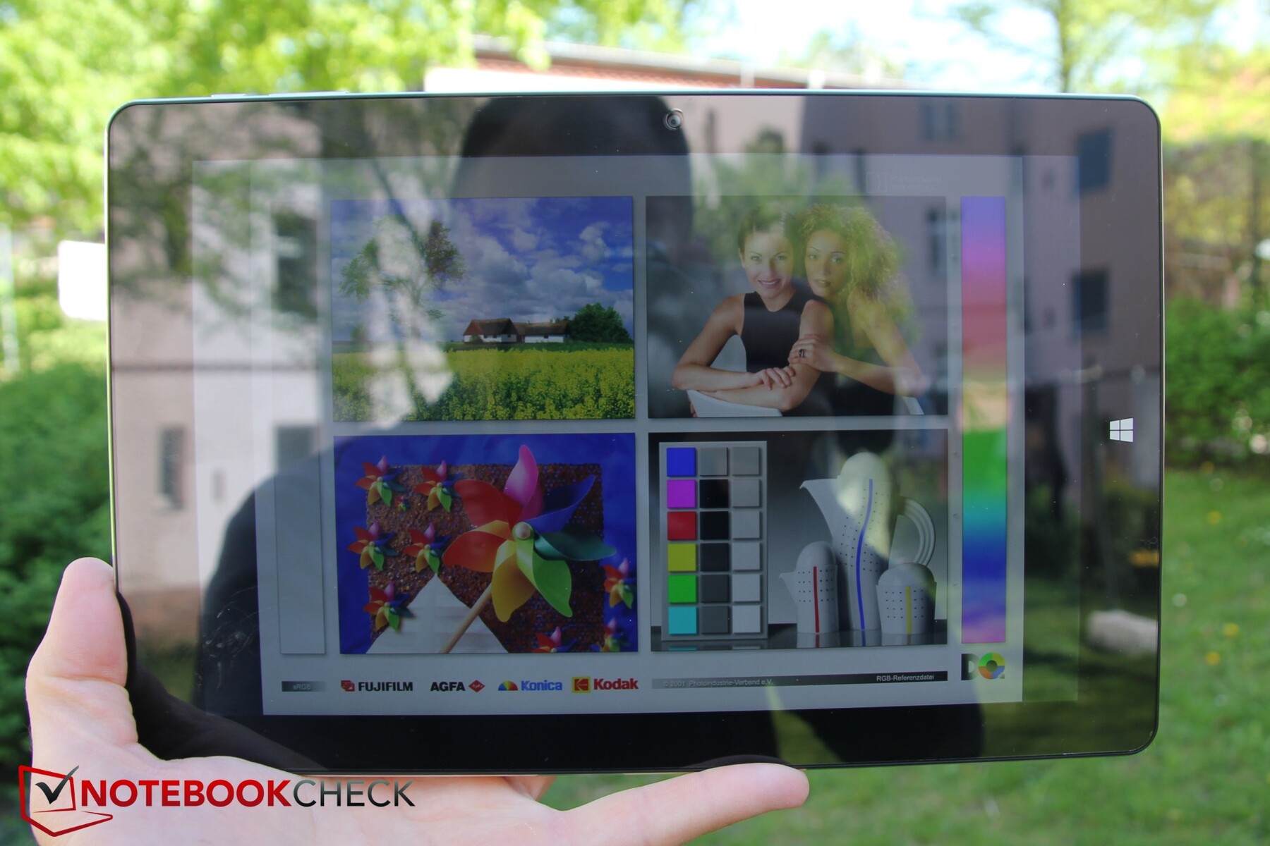Außen stört, wie bei den meisten Tablets, die spiegelnde Oberfläche des Displays, aber durch die akzeptable Helligkeit und die guten Kontrastwerte gestaltet sich der Außeneinsatz als durchaus brauchbar. Blickwinkelstabil ist das gute IPS-Panel ohnehin, beim Blick von den Seiten gehen subjektiv kaum Informationen der Inhalte verloren.
