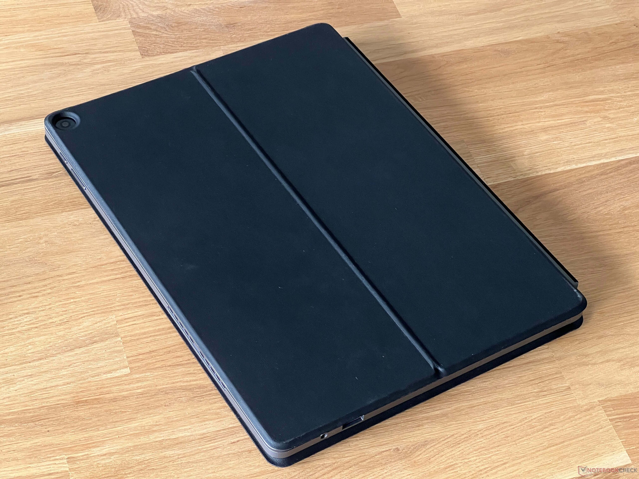 Das Hi10 Max ist ein Tablet ohne eingebauten Kickstand. Chuwi verwendet eine Metallkonstruktion und das dunkelgraue Gehäuse fühlt sich auch hochwertig an, beim Verwinden kommt es aber zu leichten Knarzgeräuschen. Zudem lässt sich auch der Bildschirm mit etwas Kraft sichtbar eindrücken, was sich funktional aber nicht negativ auswirkt. Bei normalen Touch-Eingaben gibt es das Problem zudem nicht. Im Lieferumfang befindet sich ein Cover für die Rückseite inklusive Kameraaussparung, welches in der unteren Hälfte magnetisch am Gehäuse befestigt wird. Der obere Teil kann heruntergeklappt werden und fungiert dann als Ständer. Das klappt in der Praxis gut und bietet zusätzlichen Schutz. Das optionale Tastaturcover wird an der Unterseite befestigt, diese Verbindung ist aber nicht besonders stabil und löst sich schnell.