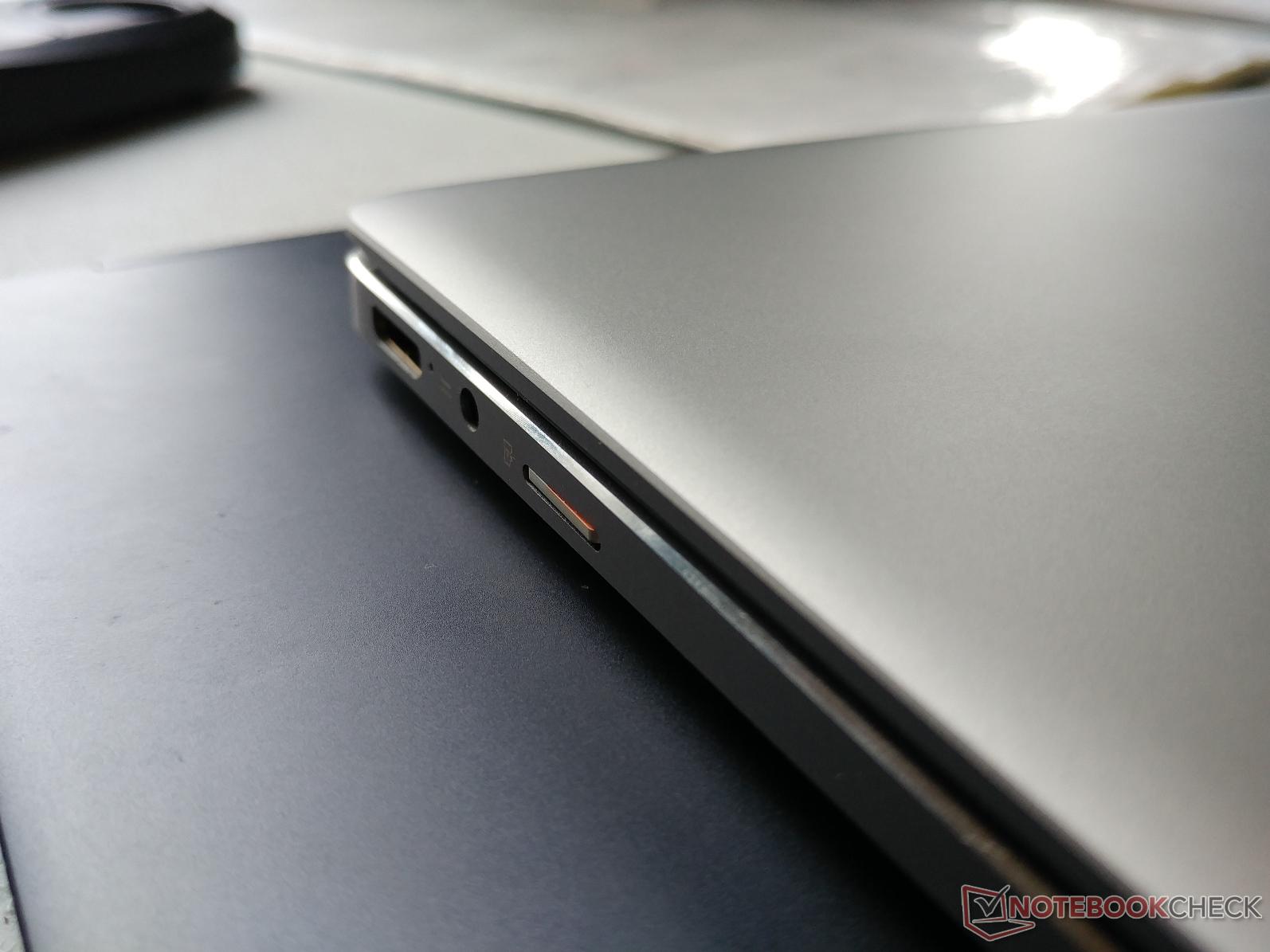 Chuwi hätte auf einen Kartenleser verzichten können, implementiert jedoch einen microSD-Leser mit Federmechanismus. Die Transferraten liegen in Verbindung mit unserer Referenzkarte von Toshiba (THN-M401S0640E2) bei etwa 45 MB/s und damit etwa halb so schnell beim Samsung Notebook 9. Es dauert rund 27 Sekunden, bevor ein 1 GB großer Ordner mit Bildern auf das Notebook kopiert wurde; beim Dell XPS 13 sind es weniger als 9 Sekunden.