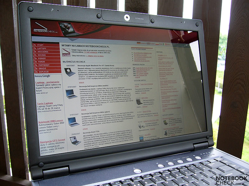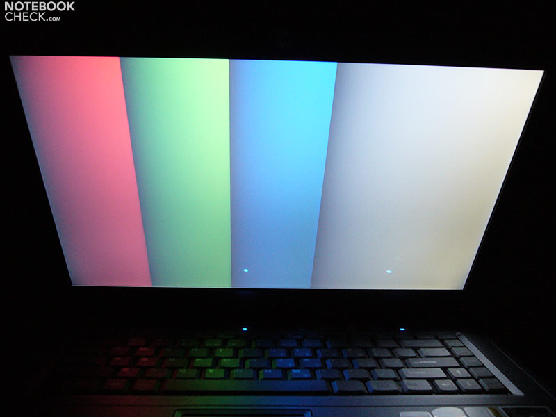Das Testsample war mit einem glänzendem 15.4" WXGA Bildschirm (1280x800) ausgestattet. Der Bildschirm wurde von LG.Philips erzeugt. Der gleiche wird auch bei einigen HP Pavilions verwendet. Die gemessene maximale Helligkeit war 217.2cd/m², ein gutes Ergebnis im Vergleich zu anderen Bildschirmend dieses Herstellers. Die Ausleuchtung ist ziemlich schwach und beträgt nur 74.3%. Hingegen das maximale Kontrastverhältnis von 241:1 ist wieder ganz ok. Im großen und ganzen ist die Qualität des Bildschirms zufriedenstellend.
