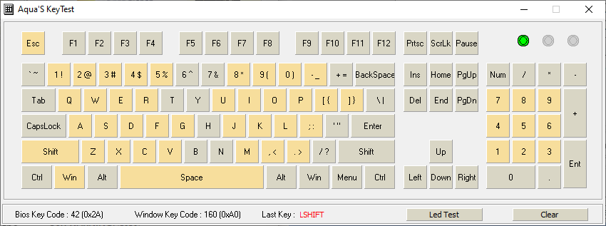 Mit dem praktischen kleinen Tool Aqua's KeyTest haben wir den eingebauten N-Key-Rollover-Mechanismus getestet. Dabei haben wir festgestellt, dass alle gleichzeitigen Tastenanschläge ausnahmslos erfasst wurden. Auch die Anti-Ghosting-Funktion verrichtet ihren Dienst, wodurch nur unsere Eingaben und keine zusätzlichen Tasten registriert wurden. Obwohl eine 6KRO- oder maximal eine 10KRO-Tastatur für die meisten Gamer vermutlich ausreichen würde, sind wir froh, dass Corsair hier mit NKRO aufs Ganze geht.