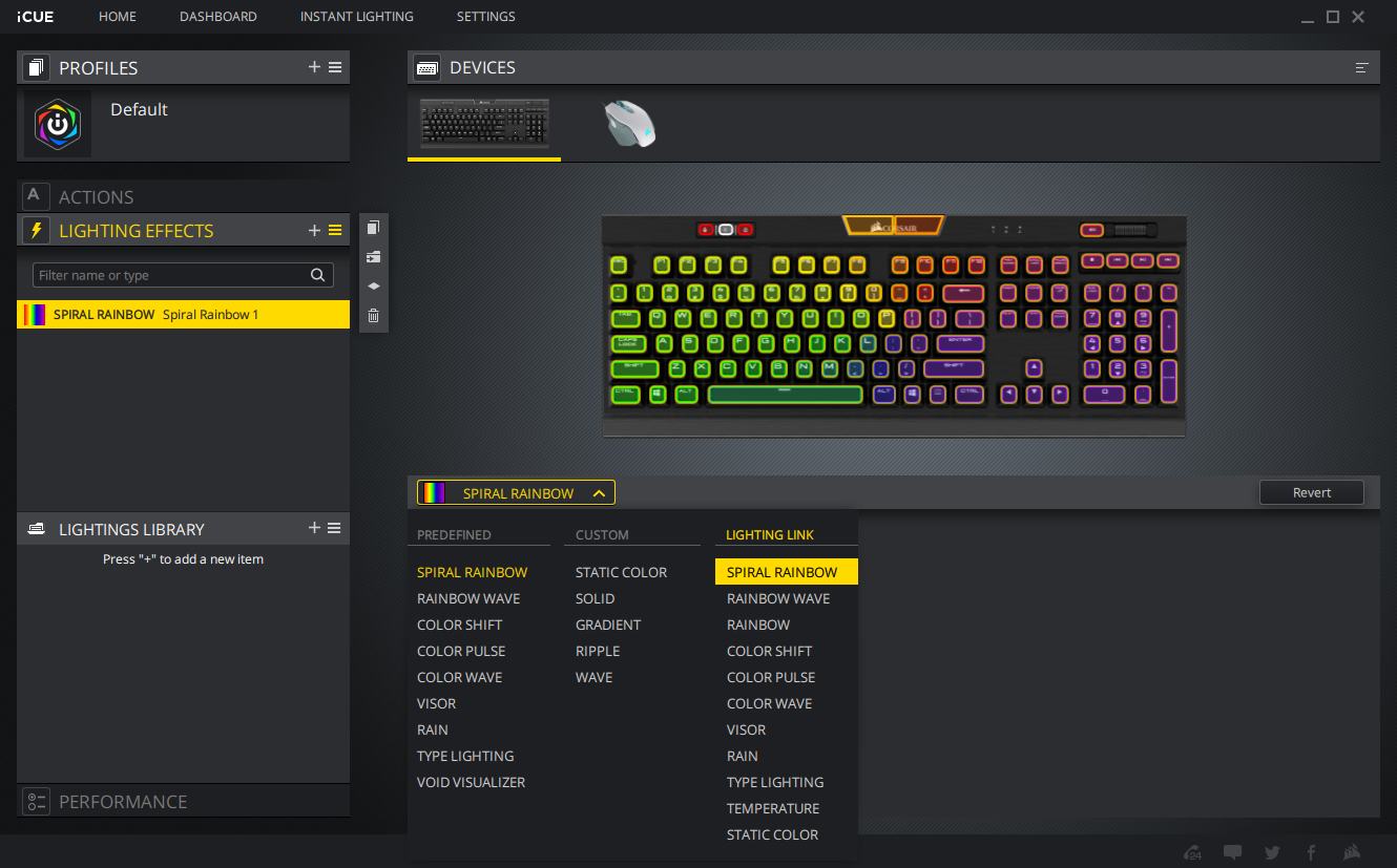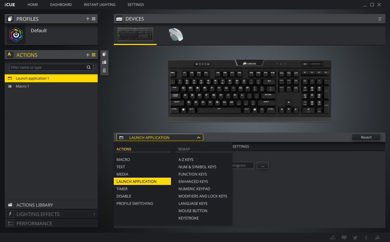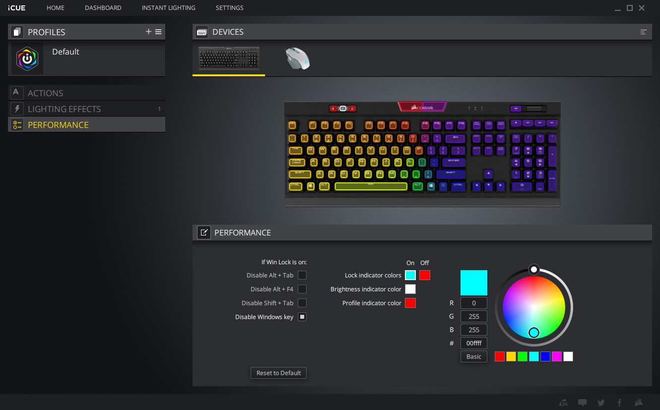 Die Corsair K70 MK.2 Rapidfire funktioniert auch ohne die Installation von zusätzlicher Software sofort nach dem Anschließen an den PC. Allerdings bietet Corsairs iCUE viele Anpassungsmöglichkeiten, welche das Benutzererlebnis der K70 MK.2 Rapidfire bereichern. Über iCUE lassen sich Makros erstellen, Tasten mit einem neuen Layout belegen (wie wäre es zum Beispiel mit Colemak?), eine Fülle an RGB-Effekten erstellen und auswählen, die Firmware updaten und die Abfrageraten ändern. Dabei ist uns aufgefallen, dass wir nach dem Ändern der Abfrageraten keine Eingaben mehr machen konnten und die Tastatur trennen und neu verbinden mussten. Wir gehen davon aus, dass Corsair dies in einem zukünftigen Update behebt.