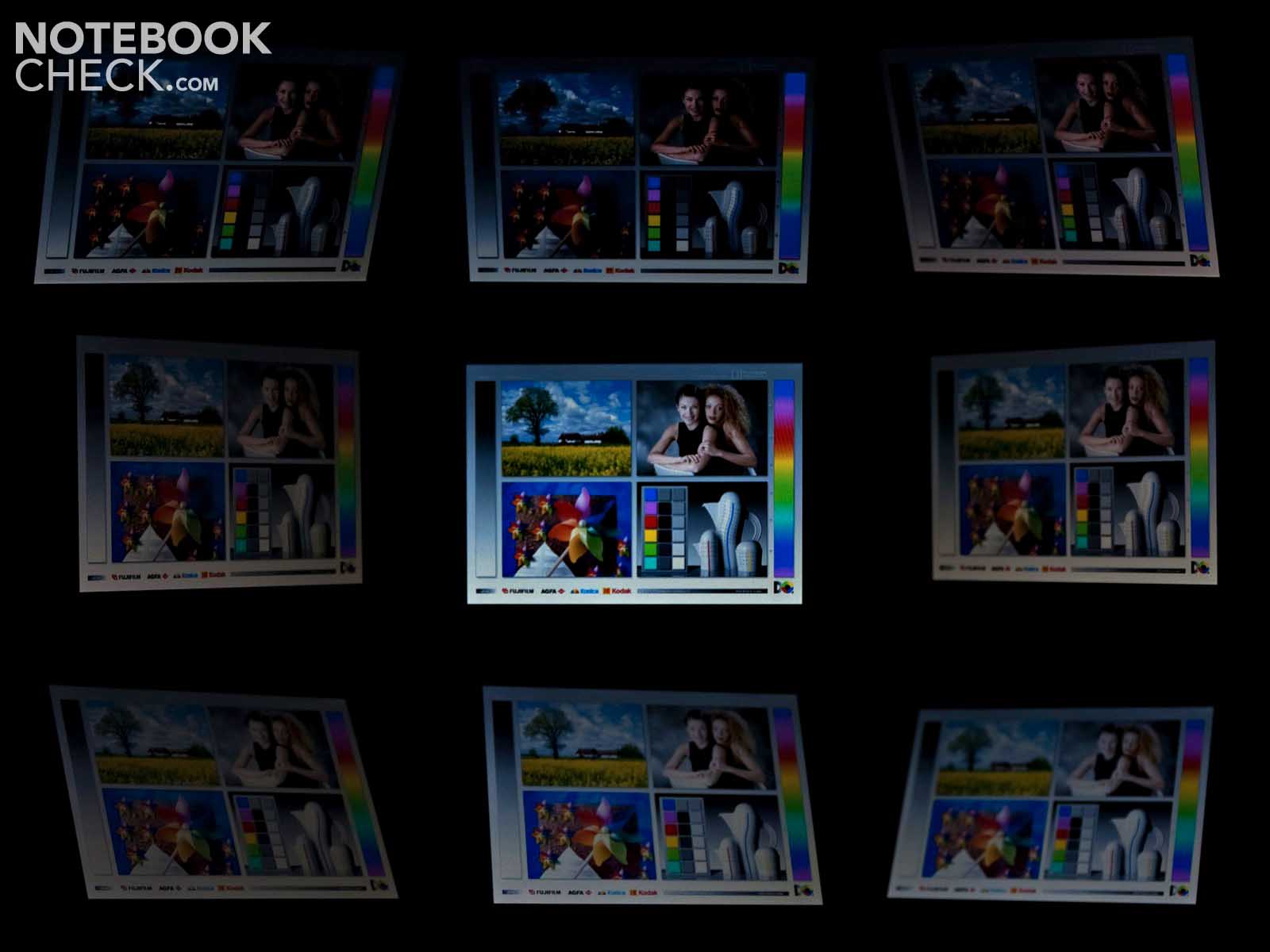 Bedient man den Tablet PC im Landscape Modus (Querformat), so treten in der Horizontalen erst ab einem Winkel von zirka 50 Grad die ersten Veränderungen auf und das Bild bleicht leicht aus. In der Vertikalen geschieht dies mit zirka 35 Grad etwas früher. IPS-basierende Displays (Apple iPad) sind auch hier deutlich im Vorteil.