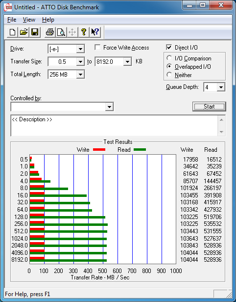 Getestet haben wir auf einem Desktop-Rechner mit mSATA-Adapter an einem SATA-6G-Port (max. 6 Gbit/s) und an diversen Notebooks mit mSATA-Schnittstelle. Am Desktop PC haben wir die vom Hersteller angegebenen Geschwindigkeiten je nach Benchmark etwas übertroffen oder leicht verfehlt. Im Ergebnis werden die 500 MB/s Lesegeschwindigkeit aber solide erzielt und sind nicht von performancesteigernden Komprimierungsverfahren abhängig. Beim Schreibtest wird sogar fast durchweg die 100-MB/s-Marke überschritten.