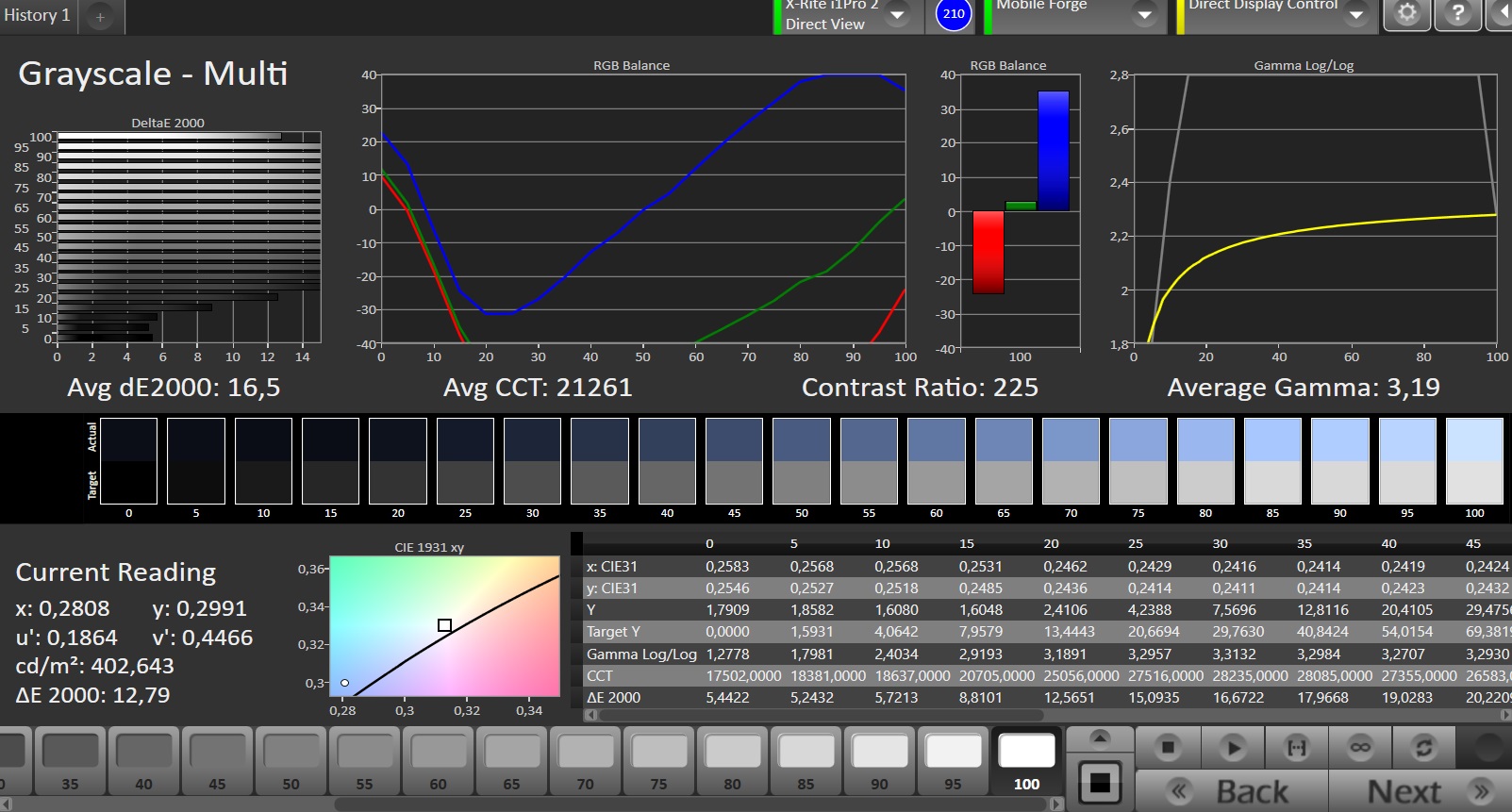 ΔE Greyscale Calman: 16.5 | ∀{0.09-98 Ø5}