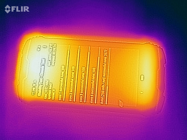 (-) Auf der Unterseite messen wir eine maximalen Wert von 45.6 °C (im Vergleich zum Durchschnitt von 34 °C).