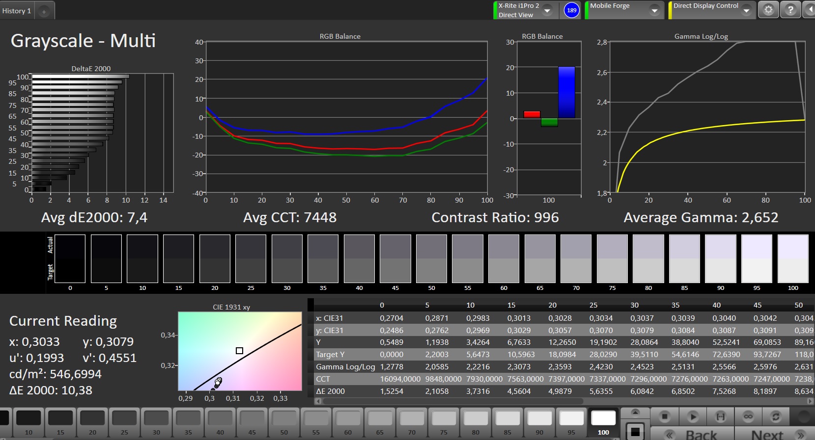 ΔE Greyscale Calman: 7.4 | ∀{0.09-98 Ø5}