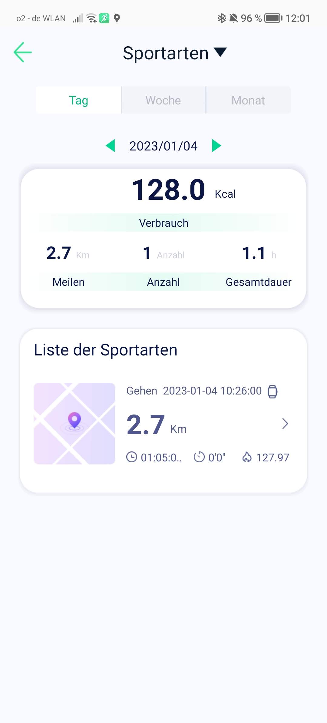Im Bereich Sport werden absolvierte Trainings angezeigt. Die Auflistung kann nach Tagen, Wochen und Monaten sortiert werden, außerdem differenziert die Software zwischen verschiedenen Sportarten. Eine automatische Trainingsaufzeichnung bietet die DT8 Ultra nicht.