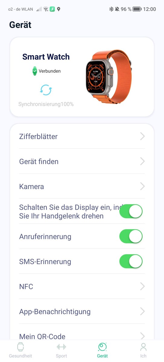 Um die Smartwatch einrichten und bedienen zu können, wird die App WearPro benötigt. Das Programm gibt es sowohl für Android- als auch für iOS-Geräte. Nach der Installation sucht die Software nach verfügbaren Geräten in der Nähe, die DT8 Ultra wurde sofort erkannt und gekoppelt. Im Anschluss müssen der App einige Rechte gewährt werden, damit sie etwa Benachrichtigungen und Telefonate an die Uhr übermitteln kann.