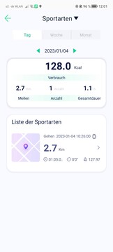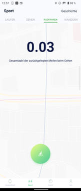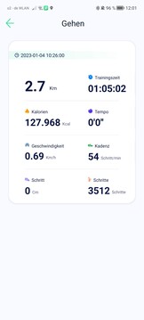 In der App werden nach dem Training weitere Daten angezeigt, etwa die Durchschnittsgeschwindigkeit oder die Kadenz. Die Werte für die Geschwindigkeit sind aber unglaubwürdig. Die Aufzeichnung einer Radfahrt gelang im Test gar nicht. Auch bei gestartetem Radtraining gibt die Software die Kadenz und die Schritte an, das Menü ist nicht an die Sportart angepasst.