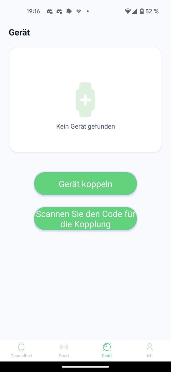 Die App ist übersichtlich aufgebaut. Sie bietet im Reiter Gesundheit einen Überblick über die gesammelten Körperdaten, unter Sport einen Überblick über absolvierte Sporteinheiten und unter Gerät Eintellungen für die Smartwatch. Die Anpassungmöglichkeiten sind allerdings begrenzt. Es geht vor allem um grundsätzliche Berechtigungen, wie die Anrufweiterleitung, das Übertragen von App-Benachrichtigungen oder das Ändern des Ziffernblattes.