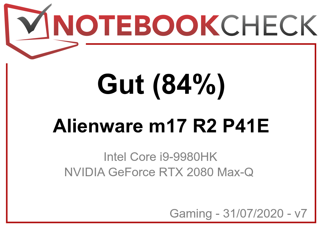 | 84.2 % v7 (old) | 02 / 2020 | Alienware m17 R2 P41E i9-9980HK, GeForce RTX 2080 Max-Q | 2.6 kg | 20.5 mm | 17.30" | 1920x1080 | |