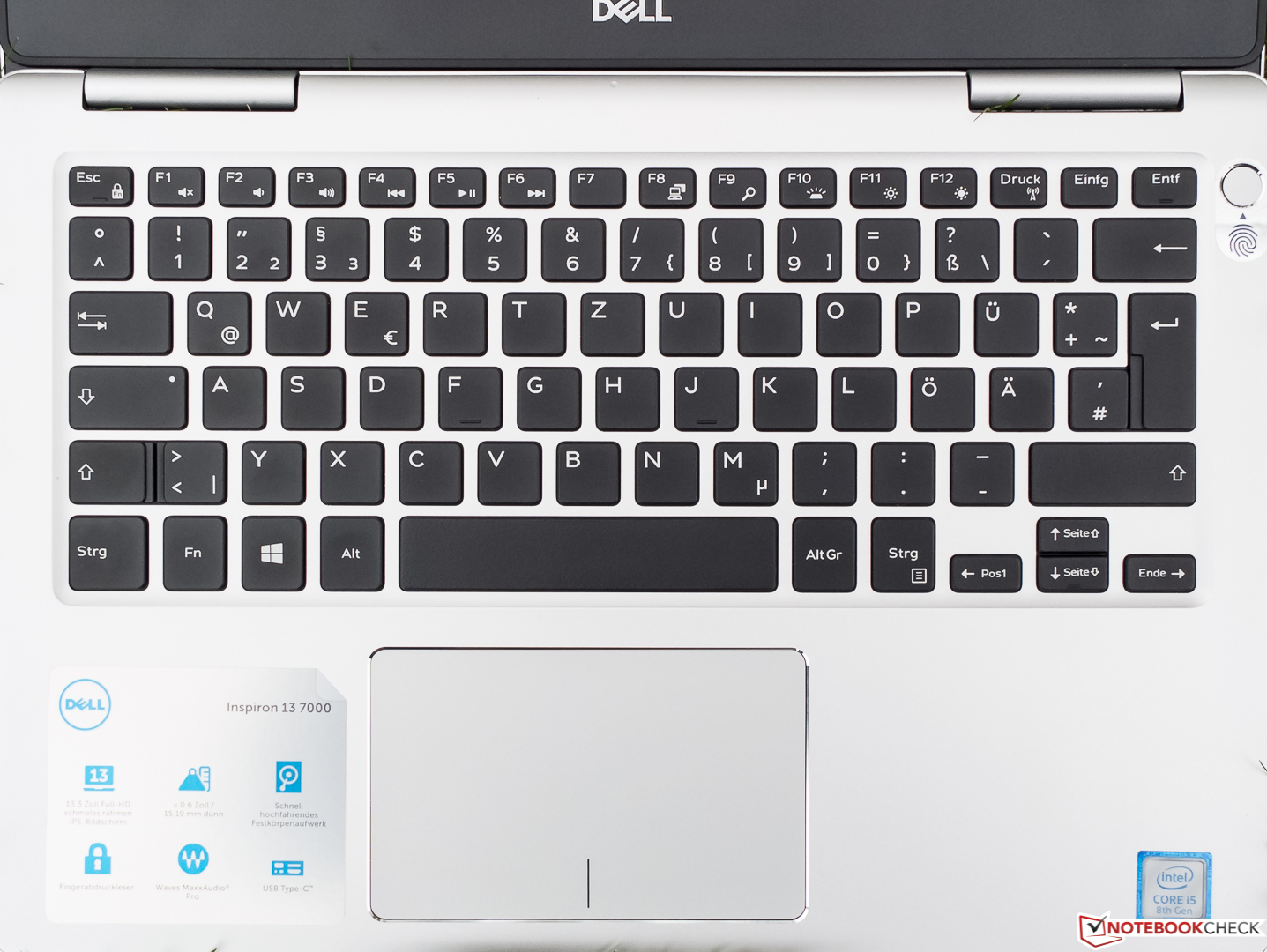 Im Hinblick auf das mobile Nutzungsszenario hat der Hersteller dem Inspiron 13 7370 einen aktuellen TPM-2.0-Chip und darüber hinaus einen mit dem On/Off-Button kombinierten Fingerabdrucksensor spendiert, der sich mithilfe von Windows Hello problemlos einrichten ließ und das Gerät schnell und zuverlässig entsperrt.
