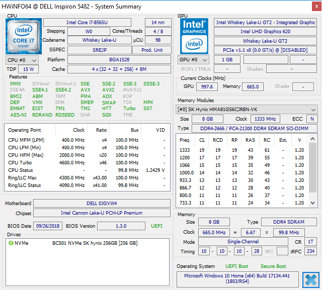 Das neue Inspiron 14 5000 setzt die neueste Intel-Whiskey-Lake-U-Prozessorgeneration ein, die die Kaby-Lake-R-Serie ersetzt. Der Core i7-8565U in unserem Testgerät ist auch in teureren Ultrabooks wie dem Asus Zenbook UX433 zu finden. Aktuell bietet keine der Konfigurationen eine dedizierte GPU, obwohl auf dem Motherboard scheinbar Platz dafür wäre.