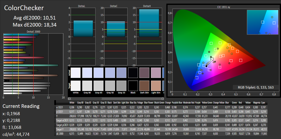 ΔE ColorChecker Calman: 10.51 | ∀{0.5-29.43 Ø4.78}