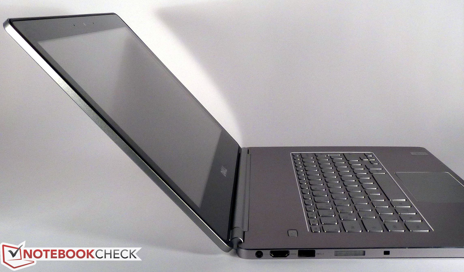 Das von Chi Mei gefertigte Display löst auf 14 Zoll Diagonale mit 1366 x 768 Bildpunkten auf. Der Bildschirm zeigt Schwächen bei der Helligkeit (im Schnitt nur rund 190 cd/m²), was besonders störend wirkt, da die Touchoberfläche eine hochglänzende Verspiegelung erforderlich macht. Der gebotene Kontrast geht indes mit rund 700:1 in Ordnung.