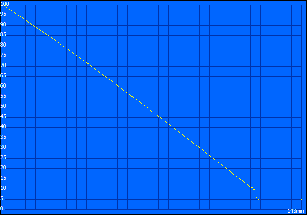 Bei unseren Tests der Akkulaufzeit ist eine Probe der Laufzeit während des DVD-Schauens üblich. Der Filmspaß endete nach 2:04 Stunden deutlich schneller, als der WLAN-Test. Auch die wiederholte Messung mit einer Filmwiedergabe von Festplatte erzielte nur 2:14 Stunden.