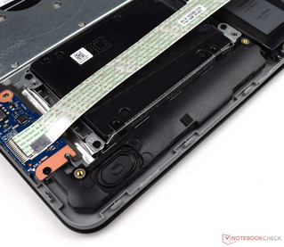 Nachtrag zum Touchpad: Im geöffneten Zustand wurde der Akku entnommen, sodass im Inneren der Zugang zum Touchpad möglich war. Im Zuge dessen wurden die Schrauben etwas nachgezogen, um das Eingabemedium etwas fester mit der Base zu verbinden. Im Vorfeld war dieses etwas locker, weshalb leichte klappernde Störgeräusche zu hören waren. Dies hatte etwa den gleichen Ton, als wenn eine Eingabe durch die Tasten erfolgt, was aber nicht der Fall war.