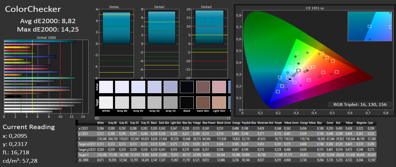 ΔE ColorChecker Calman: 8.82 | ∀{0.5-29.43 Ø4.78}