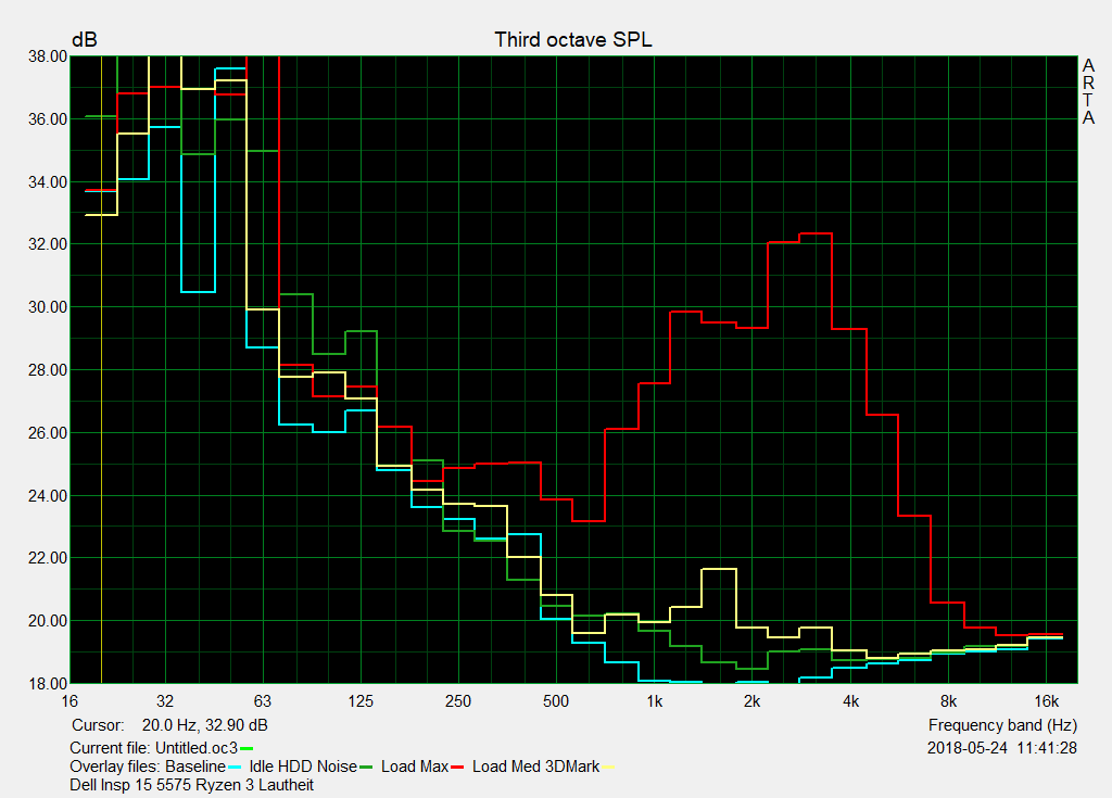 Die Festplatte ist leider die Geräuschquelle Nummer eins: Die Arbeit mit dem Laptop wird stets durch ein helles Klackern begleitet. Solcherart nervige Festplatten sind inzwischen selten, aber wie Dell zeigt, sie sind nicht ausgestorben.