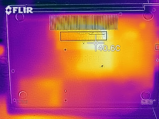 (±) Auf der Unterseite messen wir eine maximalen Wert von 41.2 °C (im Vergleich zum Durchschnitt von 36.8 °C).