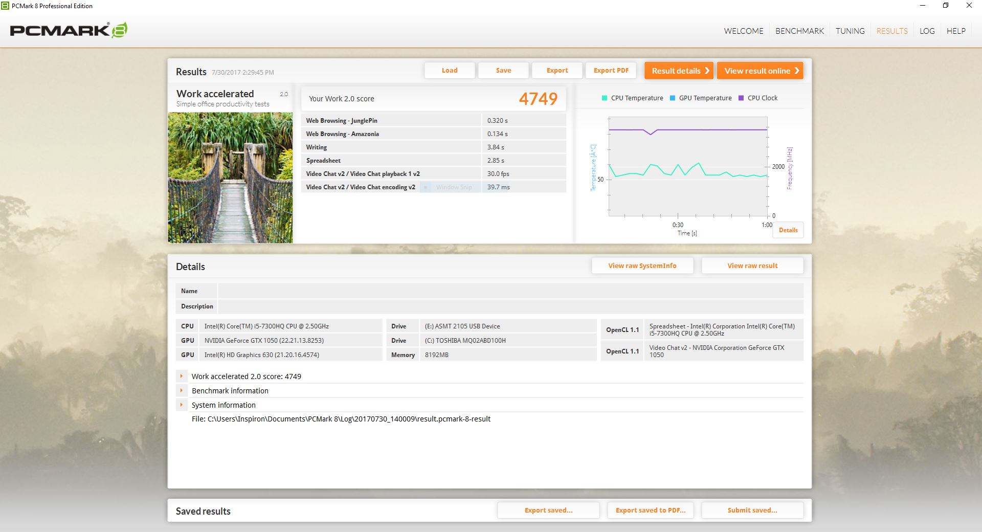 | PCMark 8 Work Score Accelerated v2 | 4749 Punkte | |