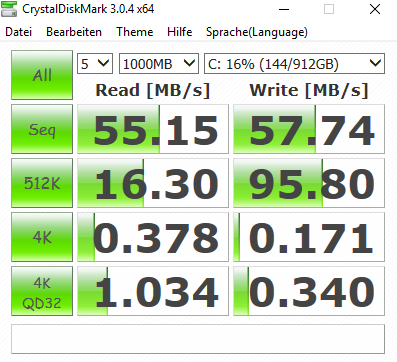 Wirft man einen Blick auf die Ergebnisse des PCMark8, so wirkt die Systemleistung recht ordentlich. Doch der subjektive Eindruck ist ein anderer, denn die Hybridfestplatte kann bei Weitem nicht mit der Leistung einer SSD mithalten. Dadurch wirkt das ganze System träge, und es kommt des Öfteren zu Wartezeiten. In dieser Preisklasse sollte eine SSD zum Standard gehören.