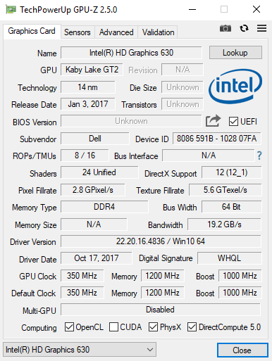 Unser Testgerät bietet einen preisgünstigen Einstieg in die Welt der Gaming-Laptops. Als Basis dient ein Intel Core i5-7300HQ sowie 8 GB DDR4-RAM. Dieser arbeitet im Single-Channel-Modus, kann aber mit einem zweiten RAM-Modul problemlos erweitert werden. Die 3D-Berechnungen übernimmt die GTX 1050 von Nvidia mit ihren eigenen 4 GB GDDR5-VRAM sowie Optimus Unterstützung. Damit hat Dell eine solide Basis geschaffen.