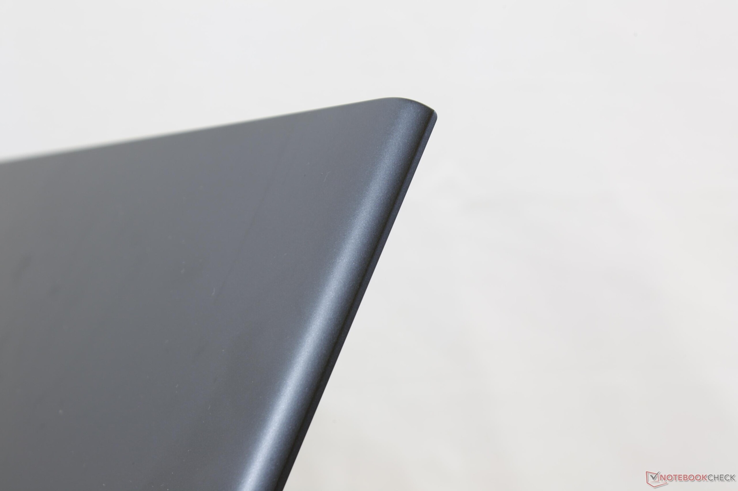 Einen Unterschied zu kostspieligeren Systemen wie dem XPS 15 und dem Alienware 15 erkennt man beim Bildschirmdeckel, denn die Stabilität fällt beim Testgerät nicht sehr gut aus. Schon beim Öffnen und Schließen des Deckels kommt es zu Knarzgeräuschen, man kann ihn auch leicht verwinden. Die Mitte lässt sich zudem leicht eindrücken, und der Bildschirmrahmen liegt unten nicht sauber am Display an, was man auch auf dem Foto rechts sieht. Bei zukünftigen Modellen sollte der Fokus definitiv auf dem Bildschirm liegen. Das einzelne Scharnier hält das Display bis zu seinem maximalen Öffnungswinkel von 140 Grad aber sicher am Platz, und beim Tippen wippt der Bildschirm auch nicht nach.