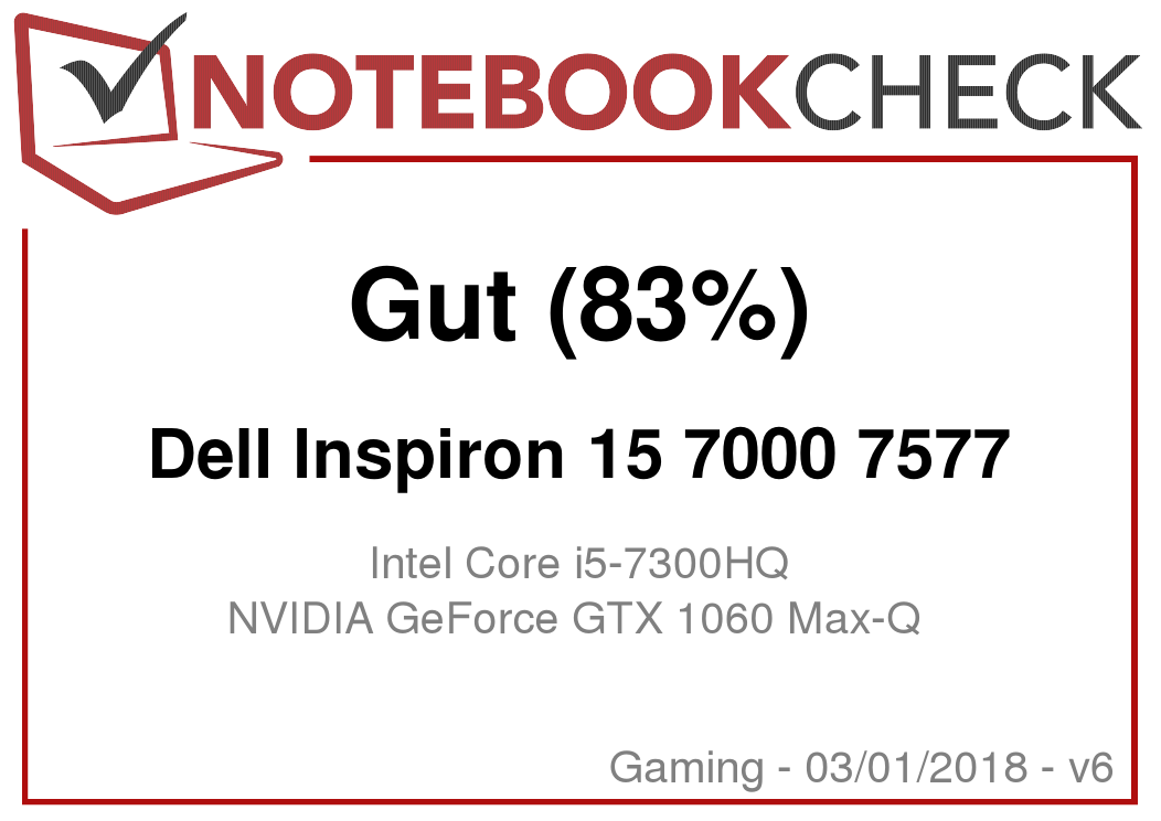 Das Inspiron 7577 ist in Anbetracht des Preises ein guter Gaming-Laptop, was vor allem an der stabilen Baseunit, den zugänglichen Komponenten und der Grafikkarte GTX 1060 Max-Q liegt. Dank der neuen GPU ist das System nun leiser, schneller, und gleichzeitig effizienter als das alte Inspiron 7567. Es passiert nicht jeden Tag, dass ein Nachfolger 35-70 % mehr Grafikleistung bietet, gleichzeitig aber nur 5-10 % mehr Strom verbraucht und beim Spielen auch noch deutlich leiser bleibt.