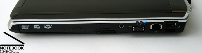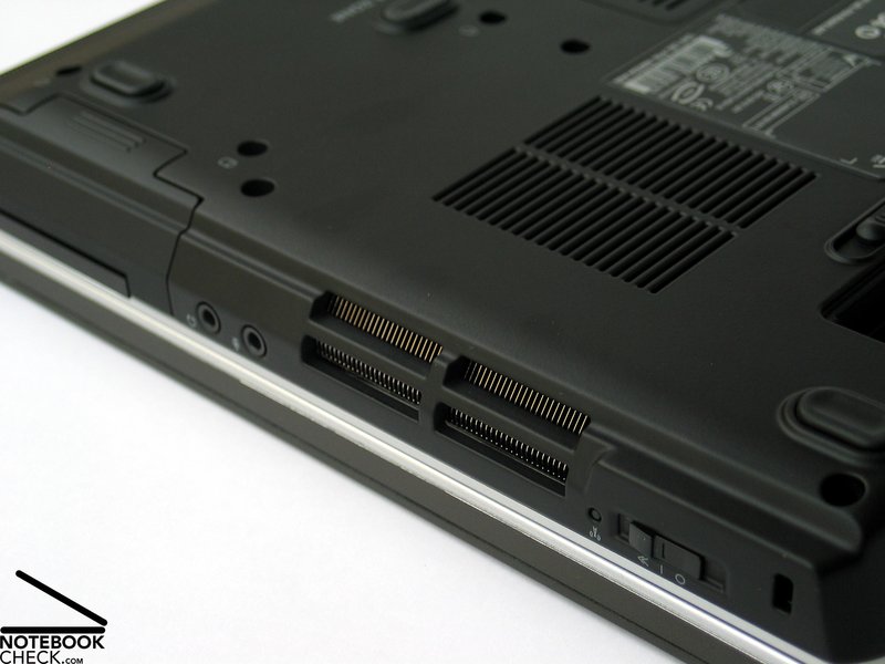 Die eher knappe Anschlussausstattung verteilt sich auf die Rückseite und den hinteren Bereich der Seitenkanten des Gerätes. Die Position kommt damit dem Benutzer zugute, bleiben doch die Vorderseite und die Flächen neben dem Notebook größtenteils frei von störenden Kabeln.
