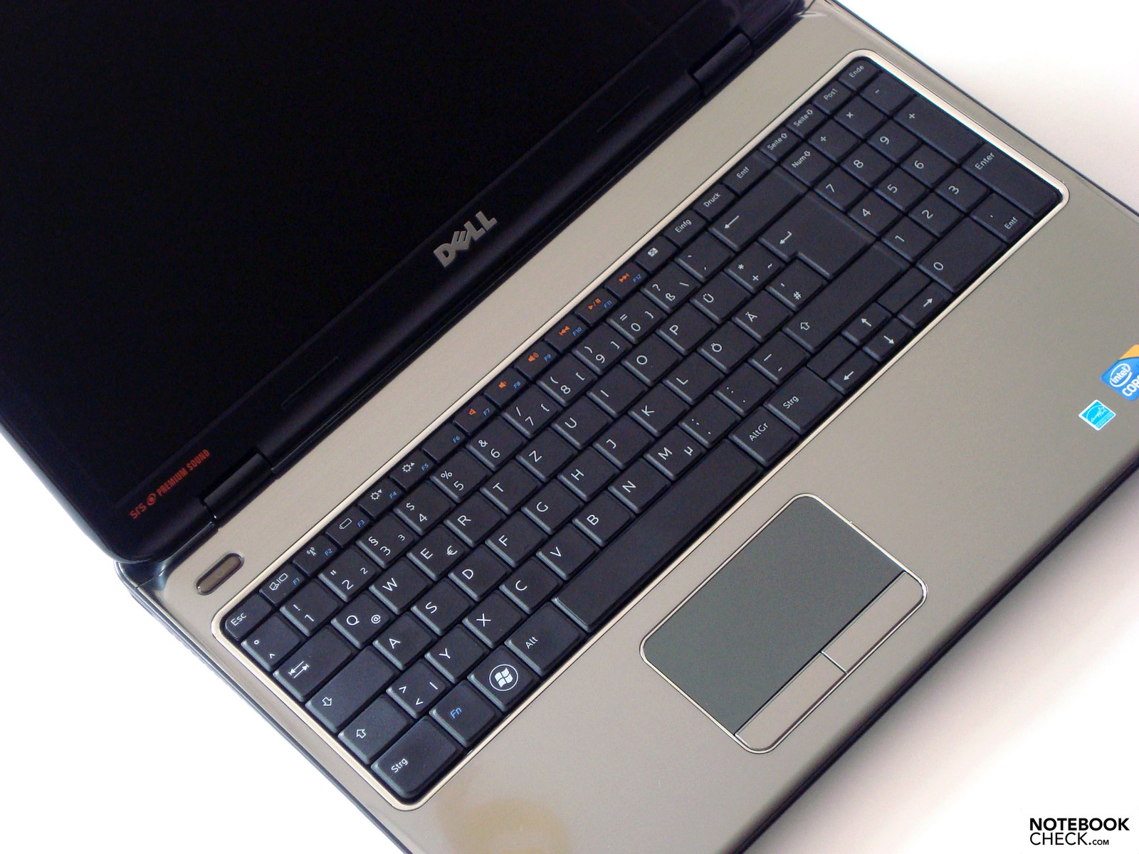 Hersteller Dell verzichtet auf die weit verbreitete Multimedialeiste zwischen Keyboard und Display und bindet diese in die Tastatur mit ein. So sind die Tasten F7 bis F12 mit den jeweiligen Multimedia Icons farblich sehr markant und auffällig markiert.