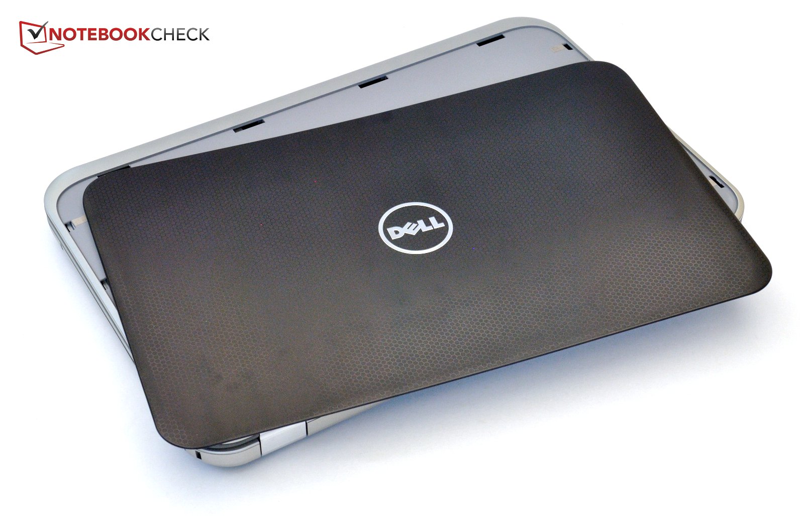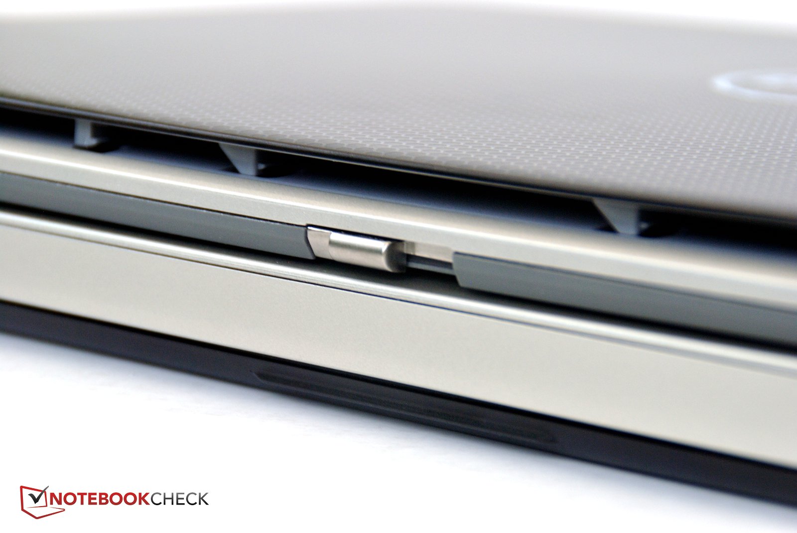 Das Design wurde komplett überarbeitet. Die außergewöhnliche Positionierung der Scharniere, wie sie bei älteren Inspiron und Vostro Modellen zu finden war, hat Dell aufgegeben und positioniert die Scharniere nun wieder ganz hinten an der Base Unit. Leider wird dadurch der Öffnungswinkel auch nicht größer und bleibt bei etwa 140°. Der Displaydeckel ist aus Kunststoff, in den das Wechselcover aus Aluminium eingelegt wird. Mit eingebauter Abdeckung ist das Display gut vor Druck von außen geschützt. Auch die Scharniere sind stark und halten das Display sicher in der gewünschten Lage.