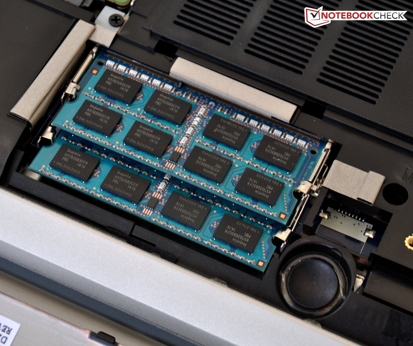 Auf der Unterseite findet man eine große Wartungsklappe. Darunter lässt sich sehr einfach die Festplatte austauschen und der Arbeitsspeicher wechseln. Beide RAM-Module sind bei unserem Testgerät jedoch bereits belegt (8 GByte RAM). An die Lüfter, zwecks Reinigung, kommt man aber nicht.