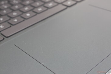 Das ClickPad des 2022er-Modells ist kleiner als das ClickPad des 2021er-Modells (11,5 x 8 cm vs. 13,5 x 9 cm) und damit gleich groß wie beim Inspiron 16 7620 2-in-1. Die neue BO-PET-Oberfläche eignet sich hervorragend für Zeigerbewegungen, da sie gute Gleiteigenschaften aufweist und bei langsamen Zeigerbewegungen leicht haftet, was die Präzision begünstigt. Dennoch sind die Klicks etwas zu weich und schwammig.